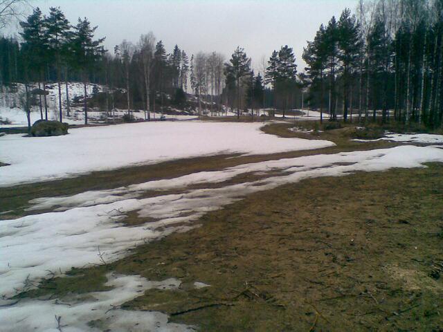 Käkigolfin kenttä on yhä kiinni ja pysyy kiinni vielä todennäköisesti aikanakin vappuun asti. Lunta on vielä rutkasti kuten eilen 16.4. otetuista kuvista näkyy. Vitosen viheriö on jo paljaana. Se sulaa aina ensimmäisenä. Olemme tällä hetkellä n. kuukauden perässä verrattuna viime vuoteen, mutta sateet ja lämpivät kelit kirivät eroa umpeen. Seuraamme tilannetta ja laitamme tänne ajantasaista tietoa tilanteen etenemisestä.